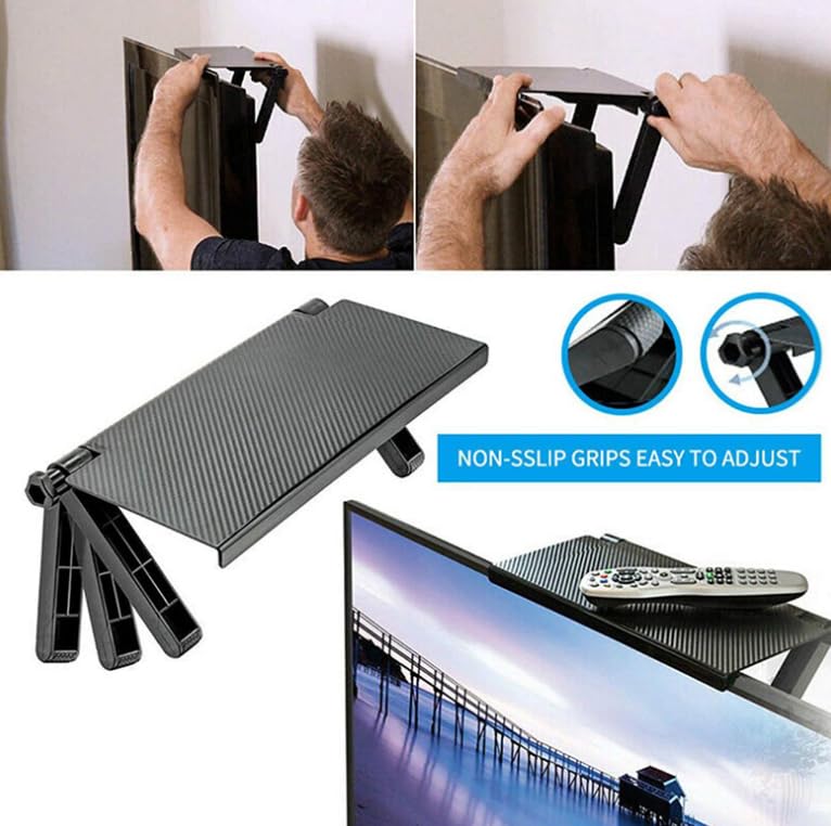 - [تصميم متعدد الاستخدامات] : تم تصميم الرف ليكون عملياً للغاية، حيث يمكنك استخدامه لتثبيت الريسيفر، السماعات، الريموت، أو أي أجهزة صغيرة أخرى بأمان أعلى الشاشة. يمنحك مساحة إضافية منظمة تساعدك على الحفاظ على ترتيب المكان وتوفير المساحة، مما يجعله مثالياً لغرف المعيشة والمكاتب وغرف النوم.