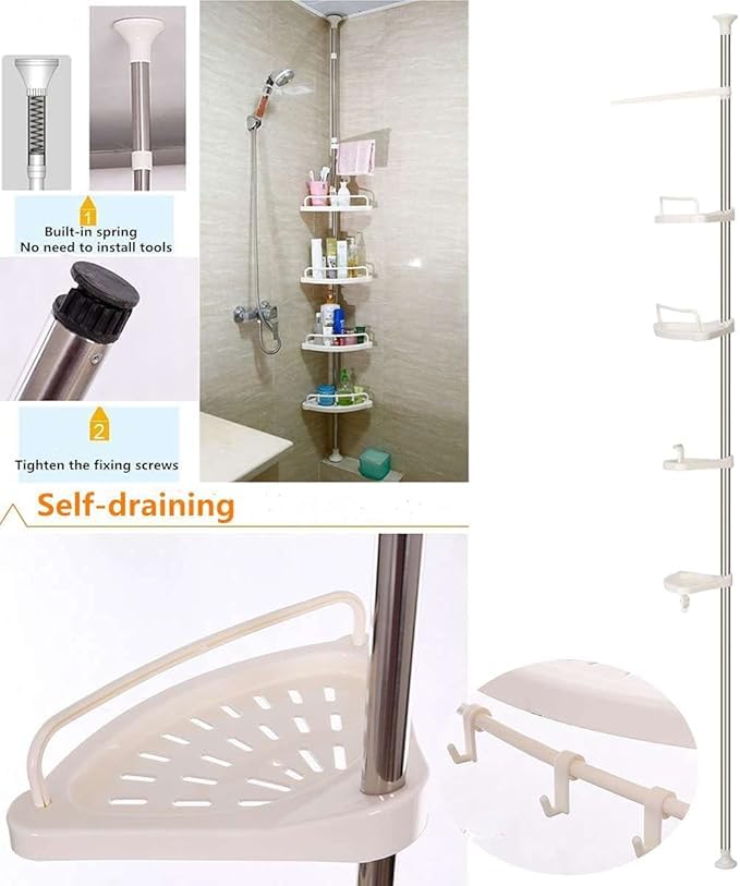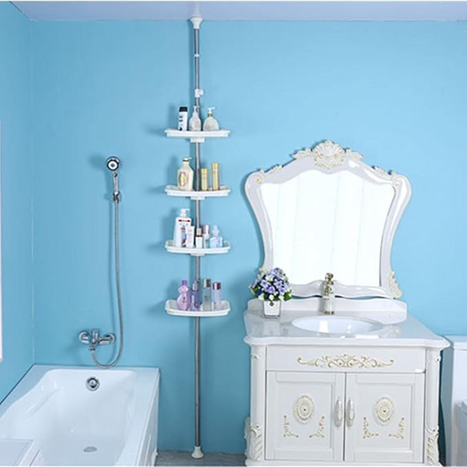 Next store - منظم زاوية متعدد الاستخدامات للحمام من Next store بتصميم قابل للتعديل مع 4 أرفف بلاستيك مقاوم وعمود ستانلس ستيل - تخزين عملي لغرفة النوم والمعيشة