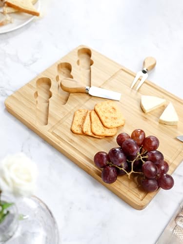 Next store - لوح تقديم جبن وخدمة مقبلات من البامبو الطبيعي مع سكاكين وأدوات تقطيع، تصميم أنيق لحفلات الشواء والضيافة من Next Store لتقديم الطعام بشكل احترافي