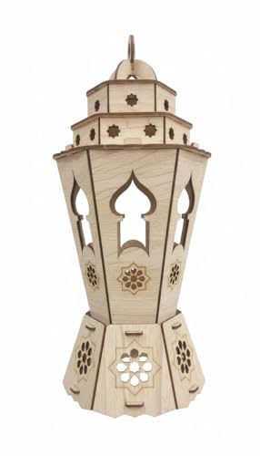 - نقوش ليزر دقيقة: يتميز الهيكل بتفريغات مقصوصة بدقة بالليزر لأشكال النجوم الإسلامية الثمانية وزخارف الزهور الهندسية، بالإضافة إلى نوافذ كبيرة على شكل أقواس ومساجد.