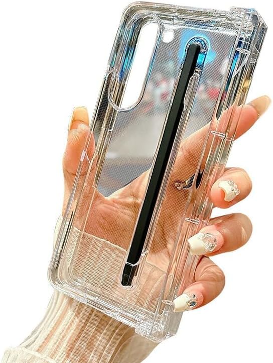 Next store - جراب حماية قلاب شفاف من البولي كربونات أنيق مع فتحة للقلم مضاد للصدمات ومضاد للبصمات متوافق مع موبايل سامسونج جالاكسي Z فولد 5 من نكست ستور