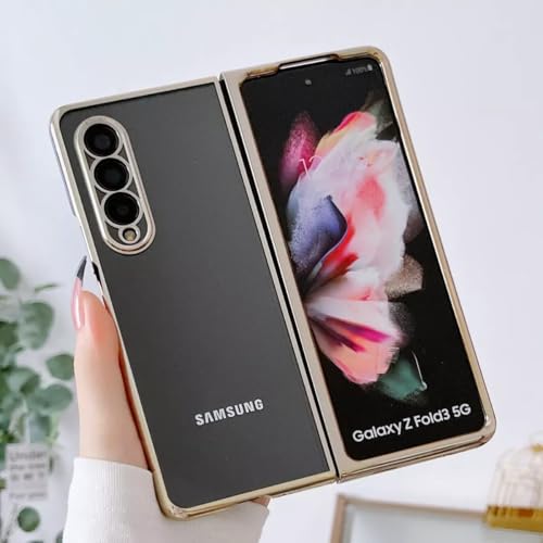 Next store - جراب حماية من البولي كربونات مصنوع من السيليكون المقاوم للصدمات بحافة قلابة بتصميم شفاف جذاب وانيق متوافق مع موبايل سامسونج جالاكسي Z فولد 3 من نكست ستور، (لون ذهبي)