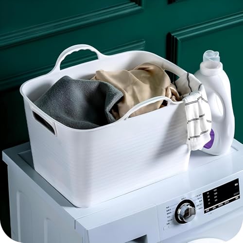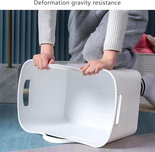 - مقابض مدمجة لسهولة الحمل: مزودة بمقبضين مدمجين في التصميم على الجانبين المتقابلين، يتميزان بحواف ناعمة لتوفير قبضة مريحة وآمنة، مما يسهل سحب السلة من الأرفف أو حملها ونقلها بين الغرف حتى عندما تكون ممتلئة.