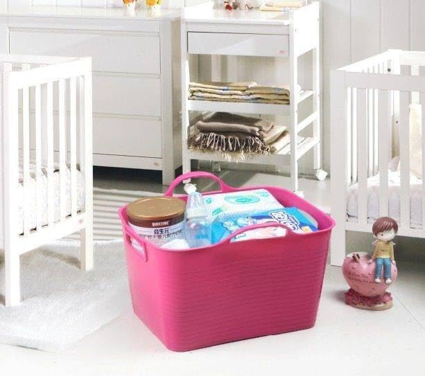 Next store - سلة تنظيم وتخزين بلاستيكية بتصميم مخطط، صندوق تخزين عميق بمقابض مدمجة، منظم متعدد الاستخدامات للملابس والألعاب وأدوات المطبخ منNext Store (بينك)