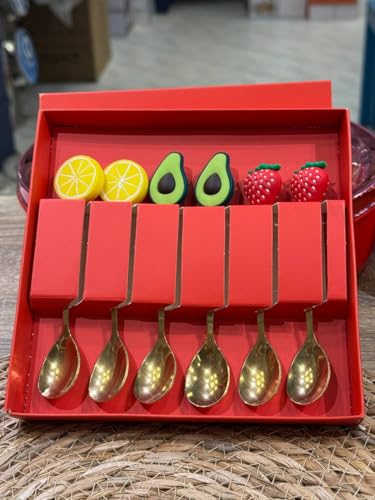 Next store - طقم معالق جولد فاخر بتصميم فواكه مميز من Next Store ، 6 قطع أنيقة من الستانلس ستيل المطلي باللون الذهبي لتقديم الحلويات والضيافة بشكل راقٍ وعصري (شكل 1)