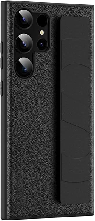 Next store - جراب حماية من الجلد متوافق مع موبايل سامسونج جالاكسي S23 الترا، جراب موبايل مضاد للصدمات مع حزام معصم وحماية كاميرا، تصميم أنيق ونحيف للغاية (أسود)