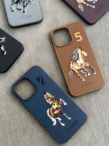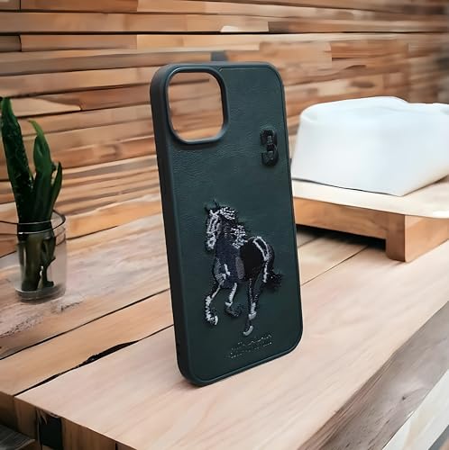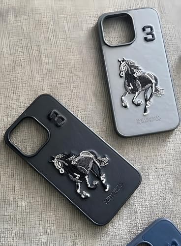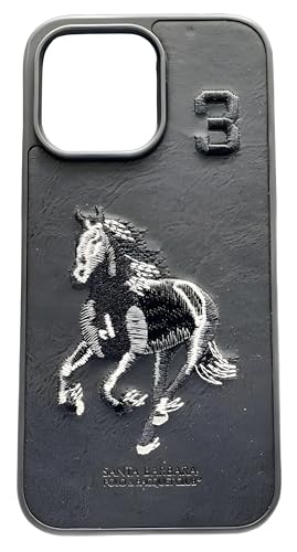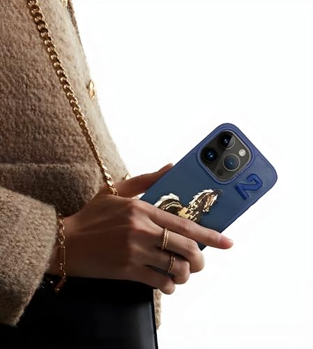 Next store - جراب جلدي فاخر من Next Store بحواف مطاطية متوافق مع موبايل iPhone 15 Pro Max، الكفر يأتي بمظهر فريد، مزين ومطرز برسوم كلاسيكية، مصنوع من مواد مرنة لحماية الهاتف من الصدمات (أسود)، حافظة بسيطة