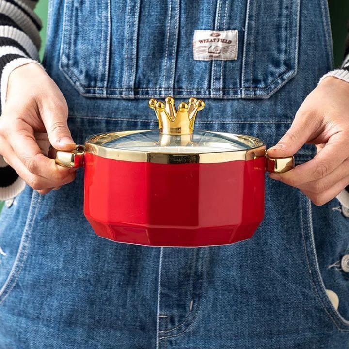 Next store - حلة بورسلين فاخره متعددة الاستخدامات بغطاء زجاجي مقاوم للحرارة ومقبض فولاذ بتصميم أنيق ومتانة عالية من Next Store. (احمر)