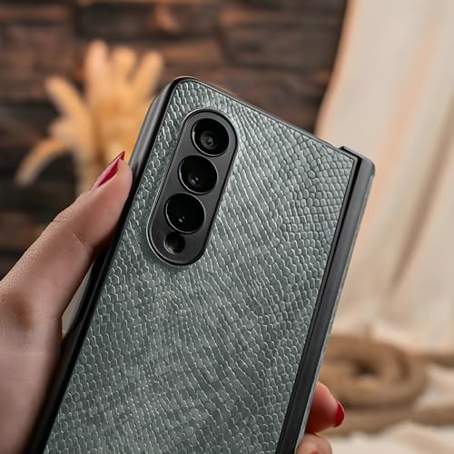 Next store - حافظة حماية من الجلد الصناعي متوافقة مع جالاكسي Z فولد 4 بريموم [شكل جلد التمساح ] للشحن اللاسلكي لسامسونج - Next store أخضر جالكسي زد