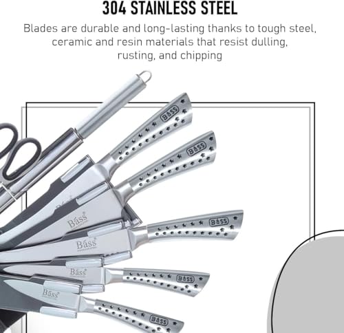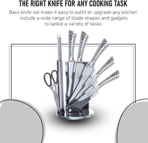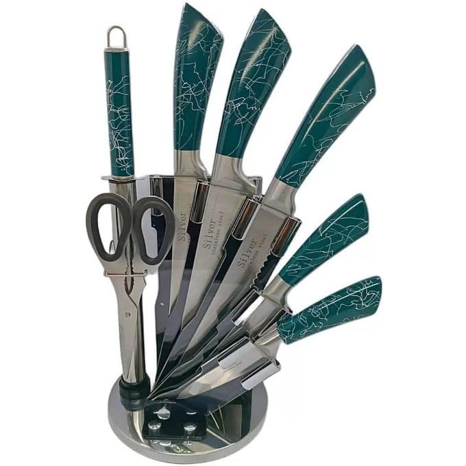 Next store - طقم سكاكين عالية الجودة من Next Store، مكون من 5 سكاكين ومقشر ومسن ومقص مع حامل دوار استانلس ستيل، تصميم متين وعملي للمطبخ (بترولي)