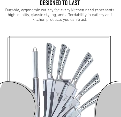 - [ سهولة الاستخدام للطهي اليومي ]: توفر السكاكين أداءً ممتازًا لتقطيع اللحوم والخضراوات والفواكه بدقة وسهولة، بينما المقشر والمسن يسهلان تحضير المكونات بشكل احترافي. المقص متعدد الاستخدامات يضيف قيمة إضافية للطقم، مما يجعله خيارًا مثاليًا للطهي المنزلي أو التجهيز للضيوف.