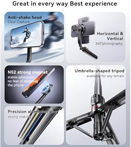 - [مغناطيس قوي لتثبيت الهاتف بثبات:] : مزودة بنظام مغناطيسي قوي يحافظ على الهاتف في مكانه بشكل آمن وثابت حتى أثناء الحركة. يمنع الانزلاق أو الاهتزاز أثناء التصوير لضمان وضوح الصورة واستقرار المشهد.