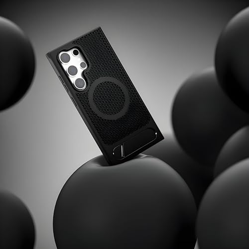 Next store - جراب حماية متين بحامل صغير متوافق مع موبايل سامسونج جالاكسي S24 الترا مزود بخاصية تبديد الحرارة ومسند غير مرئي، يدعم الشحن المغناطيسي من نيكست ستور (أسود)