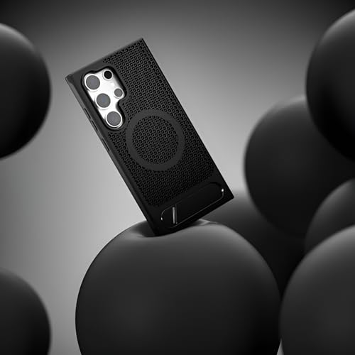 Next store - جراب حماية من نيكست ستور، متوافق مع سامسونج جالاكسي S25 الترا، مع تبديد الحرارة ومسند غير مرئي، يدعم الشحن المغناطيسي، حافظة متينة بحامل مدمج (اسود)