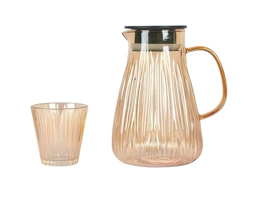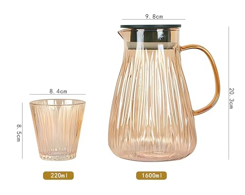 Next store - طقم دورق زجاج بيركس مع 4 أكواب للمشروبات والعصائر سعة كبيرة 1600 مل بتصميم أنيق وغطاء محكم بجوان سيليكون ومقبض مريح من Next Store