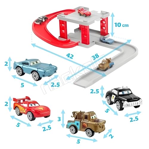 - حجم مناسب للأطفال: ارتفاع الموقف 10 سم، كل سيارة بحجم تقريبي 5×2×2.5 سم، مع تغطية المسار لمنطقة 38×42 سم.