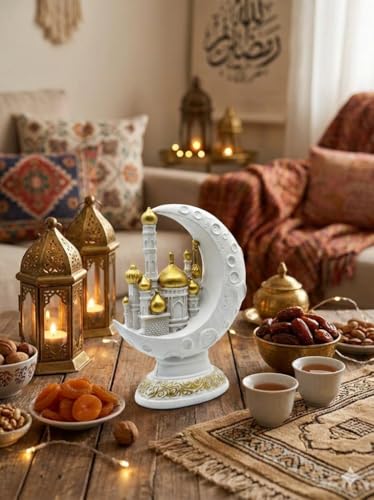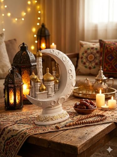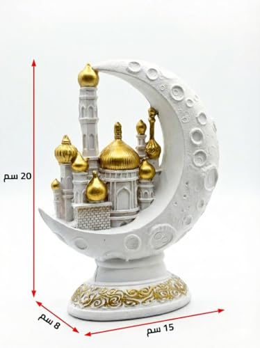 - تحفة فنية للعرض: بفضل الجمع بين الملمس الخشن لسطح القمر واللمعان الناعم للقباب، يعد هذا المجسم قطعة ديكور مثالية (Centerpiece) لتزيين طاولات الاستقبال والمكتبات في الشهر الفضيل.