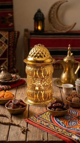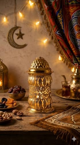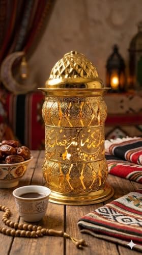 - تأثير ظلال ساحر: بفضل كثافة التفريغات في الخط العربي والزخارف الهندسية، يقوم الفانوس عند إضاءته بنثر ظلال فنية خلابة وزخارف ضوئية على الجدران، مما يخلق أجواء روحانية دافئة في ليالي رمضان.
