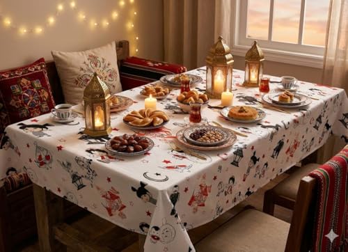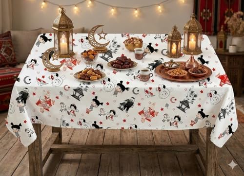 Next store - مفرش طاولة رمضاني برسومات شخصيات كرتونية ونقوش احتفالية، غطاء مائدة طعام واقي ومزين للأجواء العائلية، ديكور سفرة مبهج للأطفال من Next Store (متعدد الالوان 1)