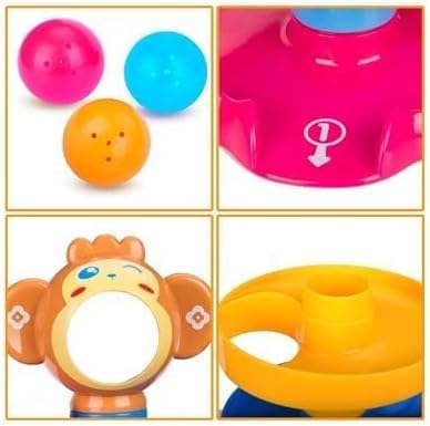 - [تصميم مبتكر وجذاب :] يتميز البرج بتصميم فريد مع 5 طبقات متداخلة، حيث يمكن للأطفال ملاحظة الكرات وهي تنزلق وتدور عبر المنحدرات بشكل ممتع، ما يعزز من تجربتهم البصرية. بالإضافة إلى وجه قرد مبتسم في الجزء العلوي الذي يضيف لمسة مرحة وجذابة، مما يشجع الأطفال على التفاعل واللعب بشكل مستمر.