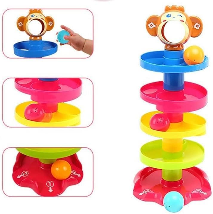 Next store - لعبة الدحرجة على المنحدر من Next Store، برج دوار 5 طبقات للاطفال | 3 كرات شخشيخة وتصميم وجه قرد في الجزء العلوي | مواد غير سامة | مجموعة تكديس، اسقاط وانطلق. (0205)