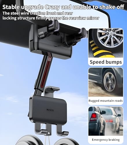 - [ مناسب لمختلف السيارات والاستخدامات: ] مصمم ليتناسب مع معظم المرايا الخلفية للسيارات، كما يمكن استخدامه في سيناريوهات متعددة مثل القيادة اليومية، الملاحة عبر GPS، أو حتى كمثبت للهاتف أثناء توقف السيارة.