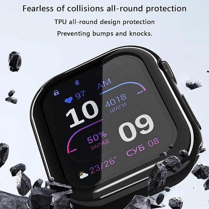- [مقاوم للخدوش]: صُمم هذا الجراب بمواد مقاومة للخدوش ليبقي الساعة بأفضل مظهر. يحمي سطح الساعة من الاحتكاك والخدوش الناتجة عن الاستخدام اليومي، ويضمن لها بريقًا يدوم طويلاً، مما يعزز من متانة الساعة ويطيل من عمرها الافتراضي.
