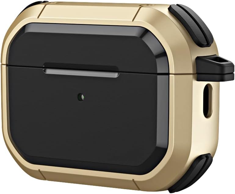 Next store - جراب حماية متين من Next store متوافق مع 2 AirPods ، تصميم مدرع يوفر حماية كاملة ضد الصدمات والسقوط، مع حلقة مفاتيح معدنية لسهولة الحمل، يدعم الشحن اللاسلكي. (جولد)
