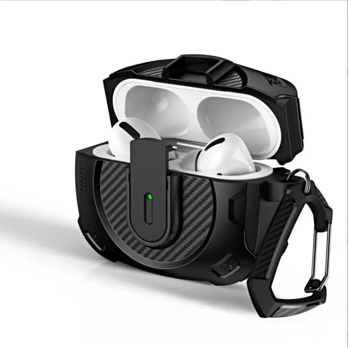 Next store - حافظة حماية متينة من نيكست ستور متوافقة مع سماعات ايربودز برو 2، حافظة واقية عسكرية مضادة للصدمات مع قفل وحلقة مفاتيح، هيكل صلب متوافق مع الشحن اللاسلكي (اسود)