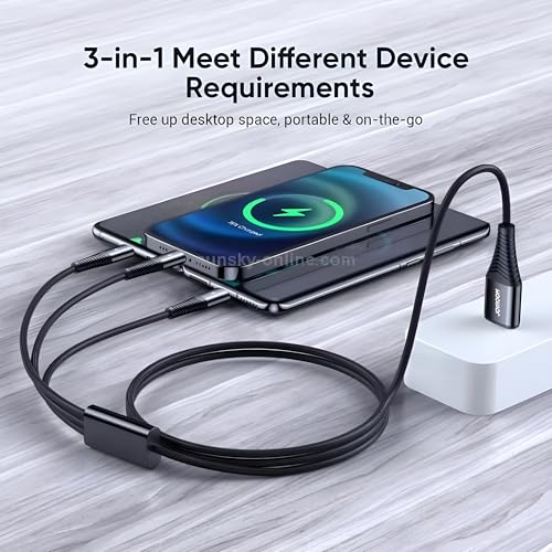 - تصميم 3 في 1: يتميز الكابل بتصميم مبتكر يحتوي على موصلات 8-Pin و Micro USB و Type-C، مما يتيح لك شحن ثلاثة أجهزة مختلفة في وقت واحد باستخدام كابل واحد فقط، مما يوفر لك الراحة والكفاءة في الشحن.