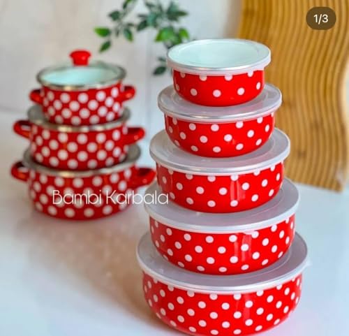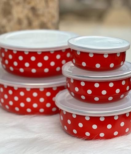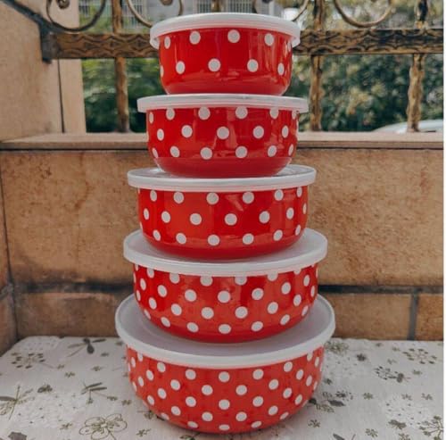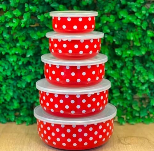 Next store - طقم علب حفظ ثلاجة صاج من Next Store منقط ضد الصدأ – 5 قطع بمقاسات مختلفة للتخزين العملي والأنيق – جودة عالية وتصميم مميز
