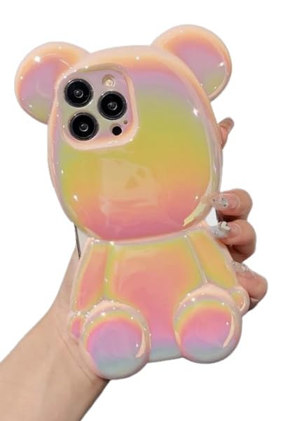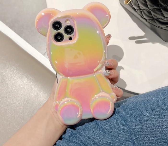 Next store - جراب من Next Store بإطار من السيليكون مضاد للصدمات، ،متوافق مع موبايل iPhone 13 ،حافظة هاتف ثلاثي الأبعاد رقيق للغاية علي شكل دب منحوت (بينك)