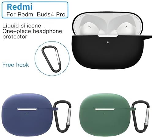Next store - حافظة سيليكون من نكست ستور متوافقة مع سماعات ريدمي بودز 4 برو، مزودة بحلقة مفاتيح، حماية متكاملة، تصميم جذاب، مثالية للاستخدام اليومي (أسود)