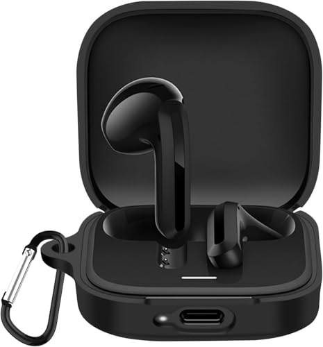 Next store - جراب حماية سيليكون من Next Store متوافق مع سماعات شاومي ريدمي بادز 6، واقي السيليكون الناعم مضاد للصدمات مع حلقة تثبيت. (اسود)