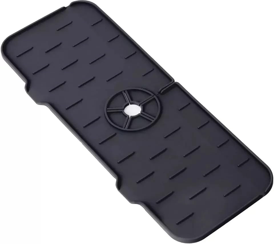Next store - حصيرة سيليكون لحوض المطبخ من Next Store، واقي رش للمياه حول الصنبور، وسادة مرنة قابلة للغسل لإبقاء سطح المطبخ جافًا ونظيفًا (اسود)