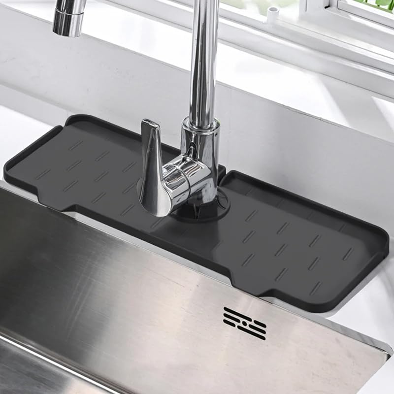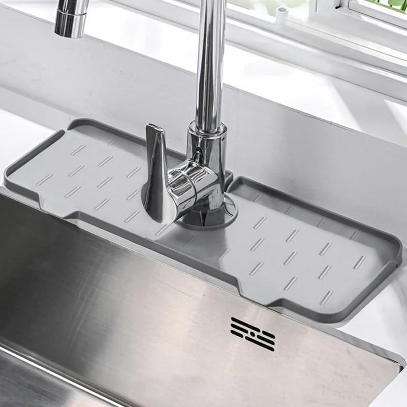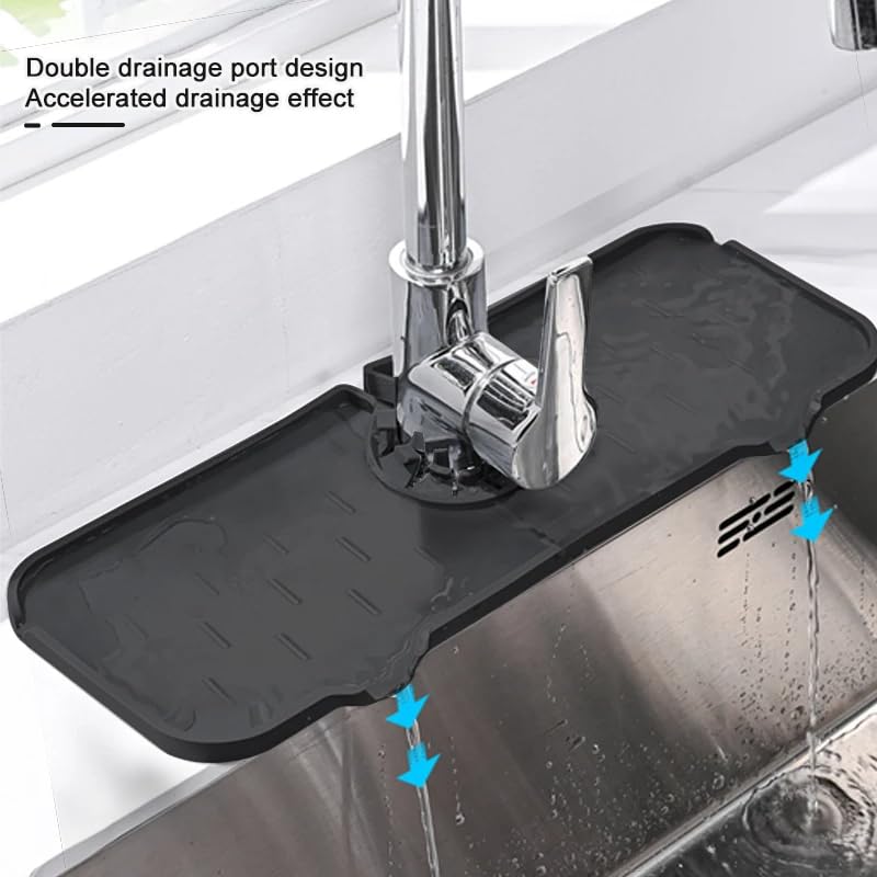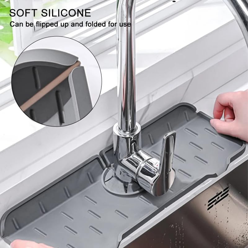 - [حماية من تسرب المياه] : تمنع حصيرة السيليكون تساقط قطرات الماء حول الصنبور وتحافظ على سطح المطبخ جافًا ونظيفًا دائمًا.