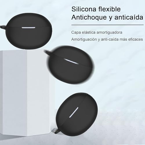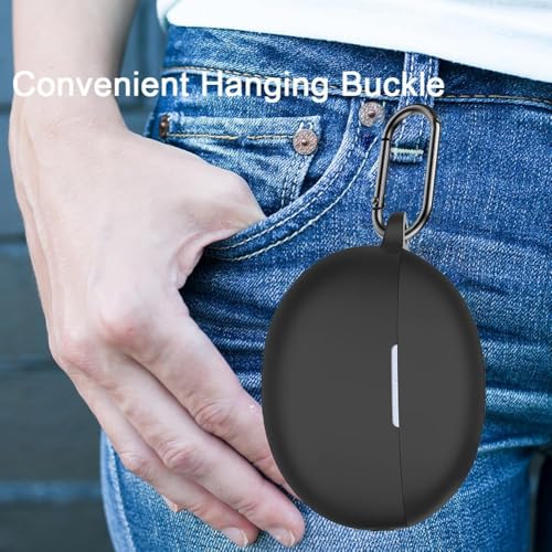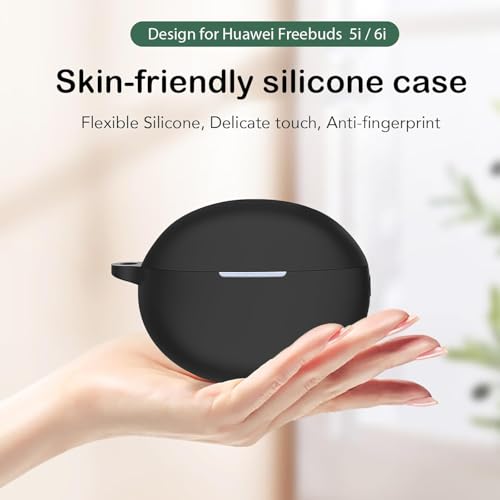 Next store - جراب سيليكون من نيكست ستور متوافق مع سماعات هواوي فري بودز 6i حافظة واقية السيليكون الناعم مضادة للصدمات حلقة تثبيت اسود