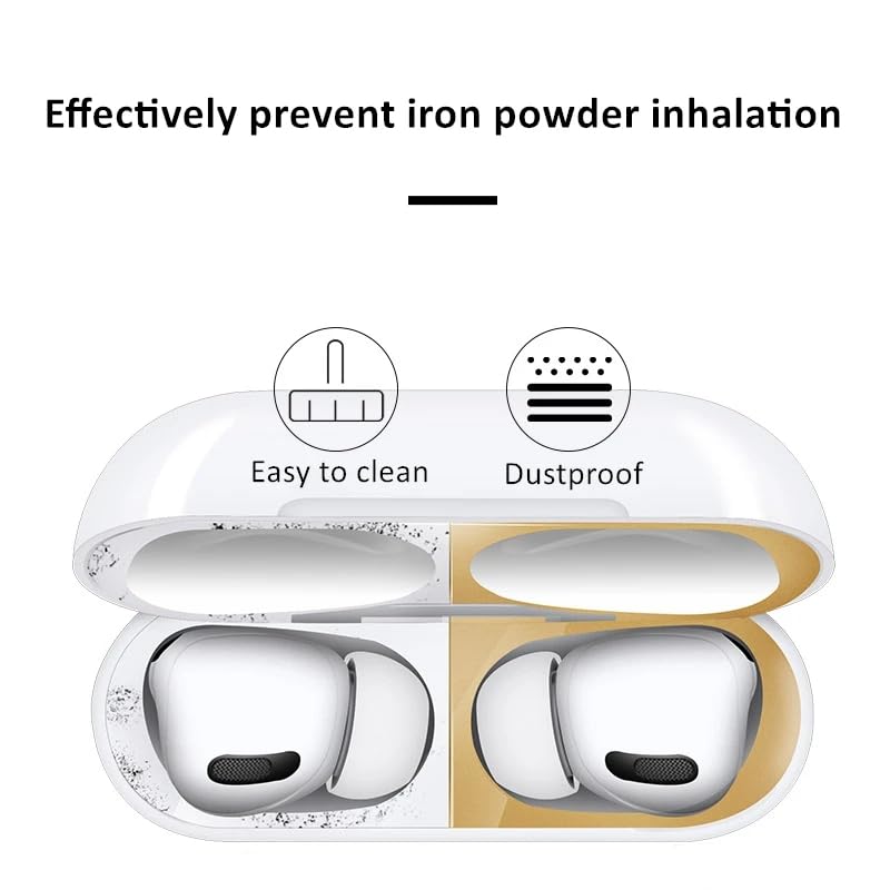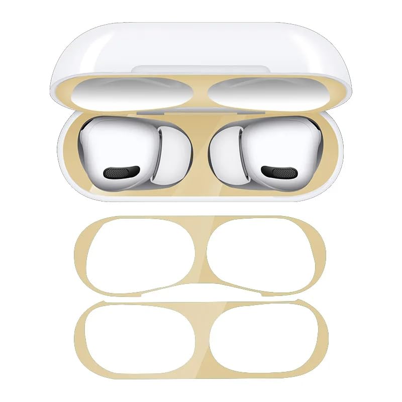 Next store - ستيكر لاصق واقي من السيليكون متوافق مع سماعة ايربودز برو 2 من نكست ستور، ملصق حماية فعالة ضد الأتربة والغبار المعدني، ستيكر للحفاظ على الحافظة نظيفة وسهلة التركيب والإزالة (ذهبي)