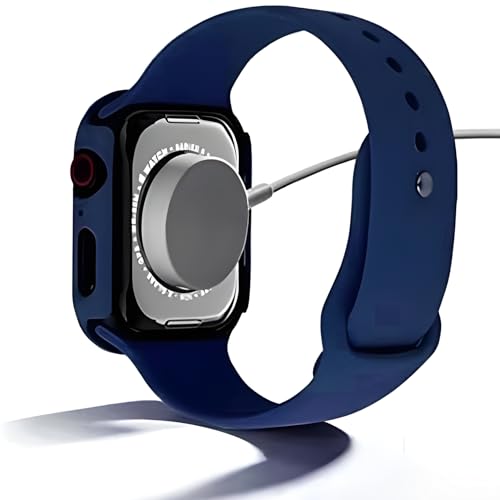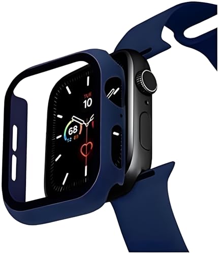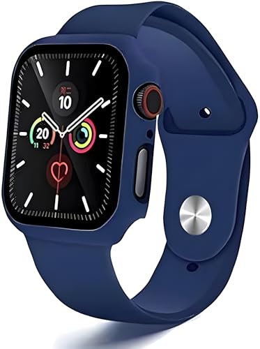 Next store - سوار ساعة سيليكون + جراب شاشة وشاشتي حماية بلون ازرق كحلي مقاس 44 للنساء والرجال من نكست ستور