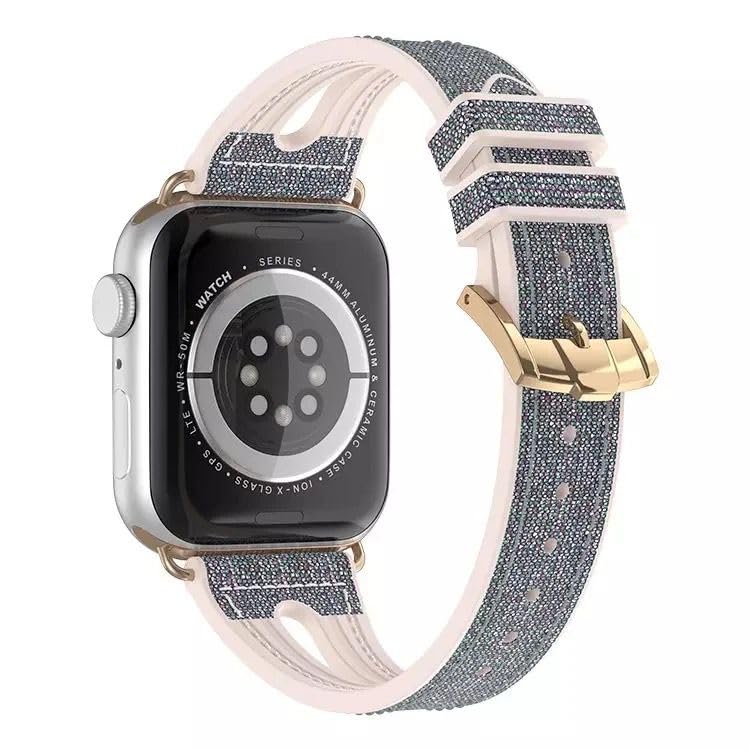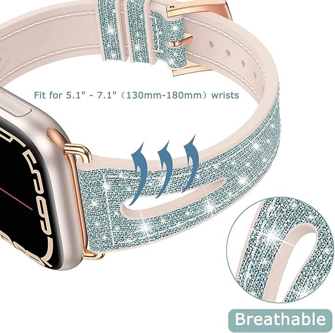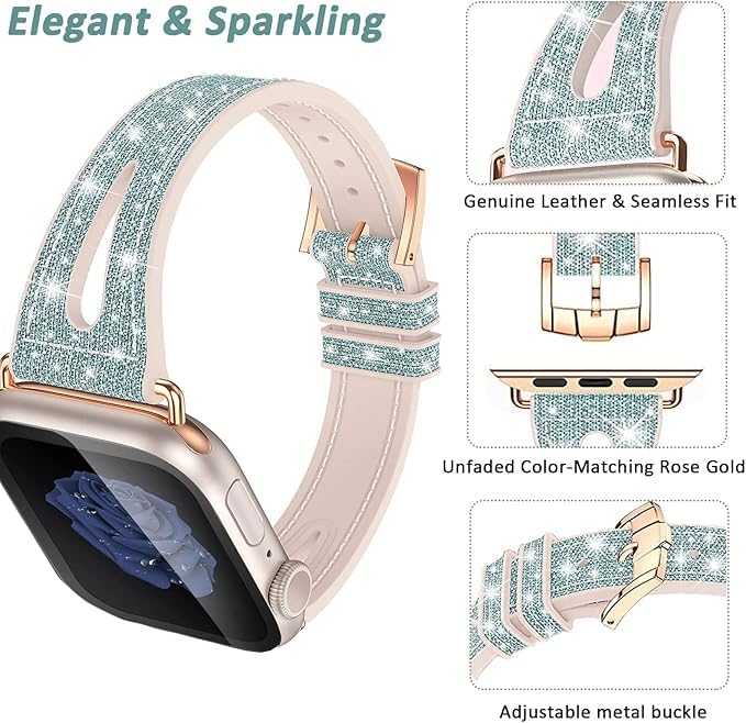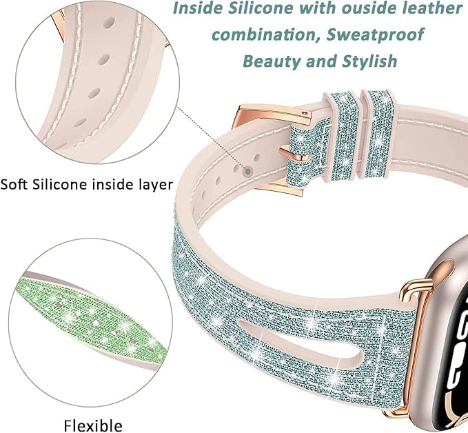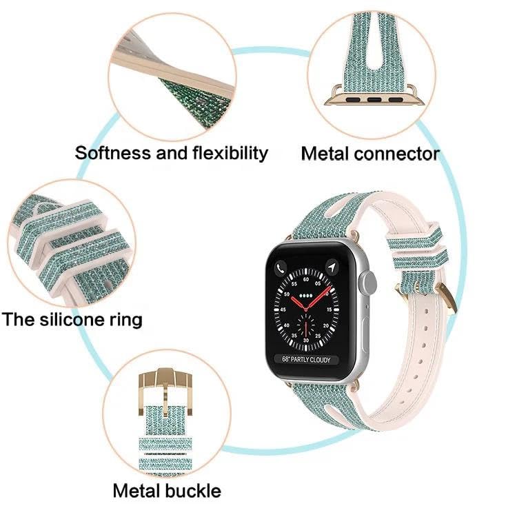 Next store - سوار ساعه من Next Store رفيع لامع بمقاسات iWatch 38mm/40mm/41mm، مصنوع من الجلد الطبيعي والسيليكون اللامع مع تصميم مريح وأنيق، يتوافق مع سلسلة iWatch 1/2/3/4/5/6/7/8/9.