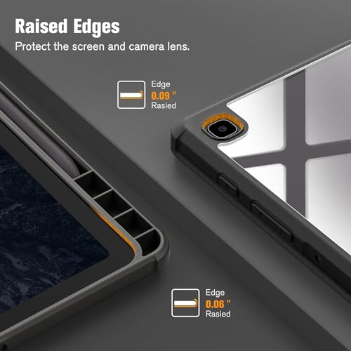 - ✅✔【مادة فاخرة】جراب خلفي صلب مع ممتص صدمات مرن من البولي يوريثين الحراري يحمي التابلت من الصدمات والسقوط والتأثيرات. يوفر الجزء الأمامي الداخلي المصنوع من المايكروفايبر الناعم حماية لجهز التابلت الخاص بك من الخدش. ويمكن أن يظهر الجراب الخلفي الشفاف لون التصميم الكلاسيكي لجهازك والشعار