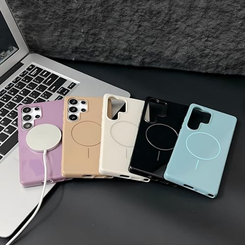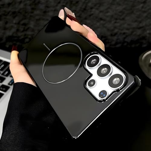 Next store - جراب هاتف رفيع لامع من Next Store من مادة TPU الناعمة متوافق مع Samsung Galaxy S21 Ultra – تصميم نحيف يدعم الشحن اللاسلكي مع غطاء مغناطيسي أنيق (أسود)
