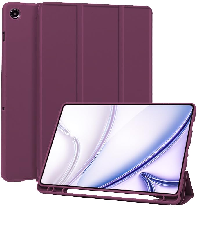 Next store - جراب تابلت نحيف مع حامل قلم من Next Store – متوافق مع سامسونج جالاكسي تاب 2023A9 - 8.7 انش غطاء ذكي بخاصية السكون/التنبيه – ظهر مرن من TPU مع حامل قابل للطي (احمر غامق)