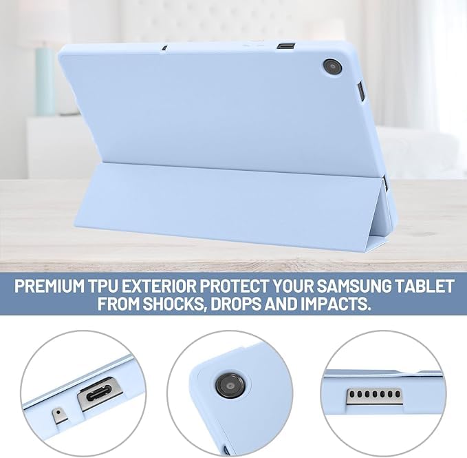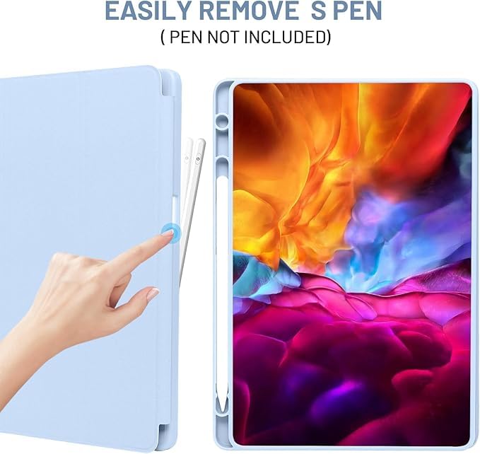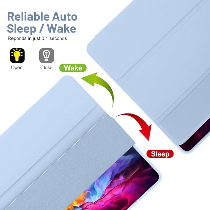 - [خاصية السكون/التنبيه التلقائي] : يتميز الجراب بغطاء مغناطيسي ذكي يعمل على تشغيل الجهاز تلقائيًا عند الفتح وإيقافه عند الإغلاق، مما يساعد على توفير البطارية وتحسين تجربة الاستخدام اليومية.