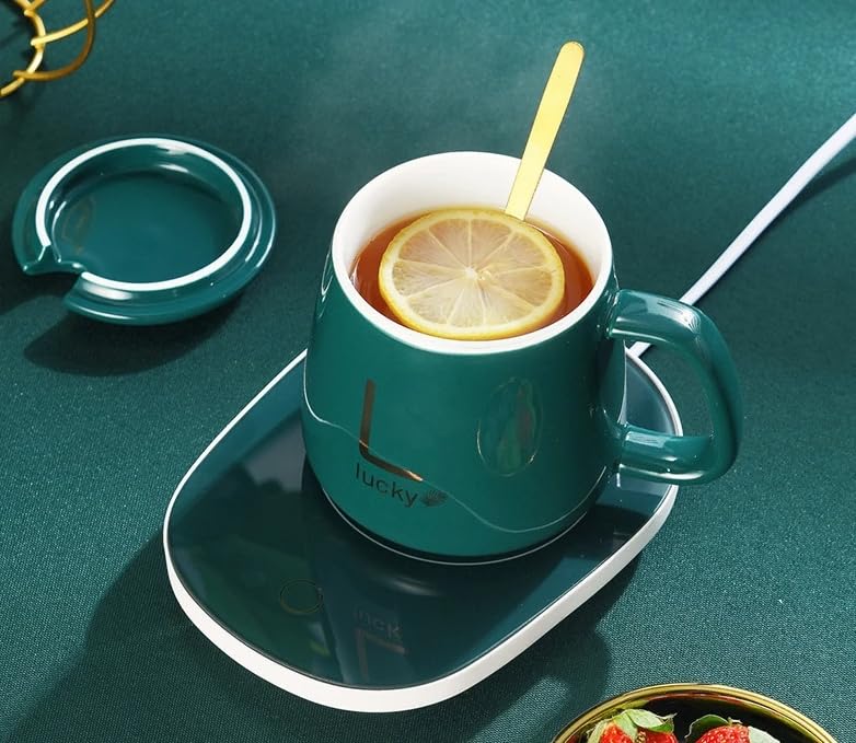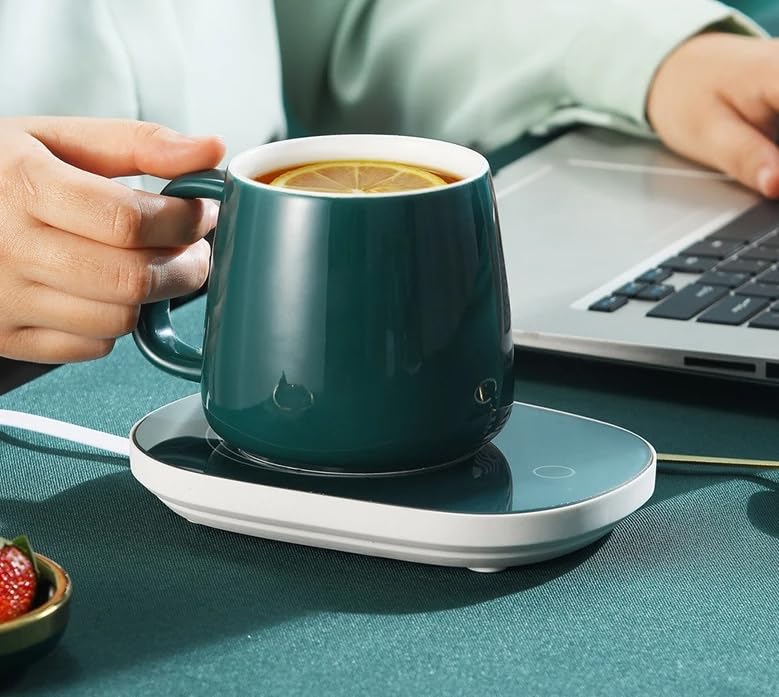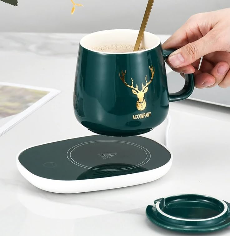 - [تصميم ذكي وأنيق] : كوب بورسلين فاخر مزود بسخان مدمج للحفاظ على المشروبات دافئة في أي وقت، مثالي للمكتب أو المنزل.