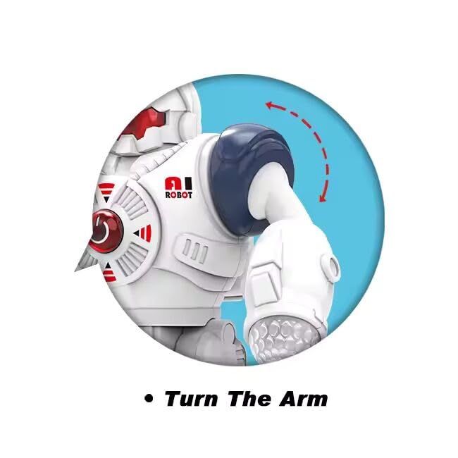 - [حركة آلية واقعية] : يمشي الروبوت للأمام ويحرّك ذراعيه بطريقة آلية تحاكي الواقع، ما يمنح الطفل تجربة لعب نابضة بالحياة ومليئة بالتشويق.