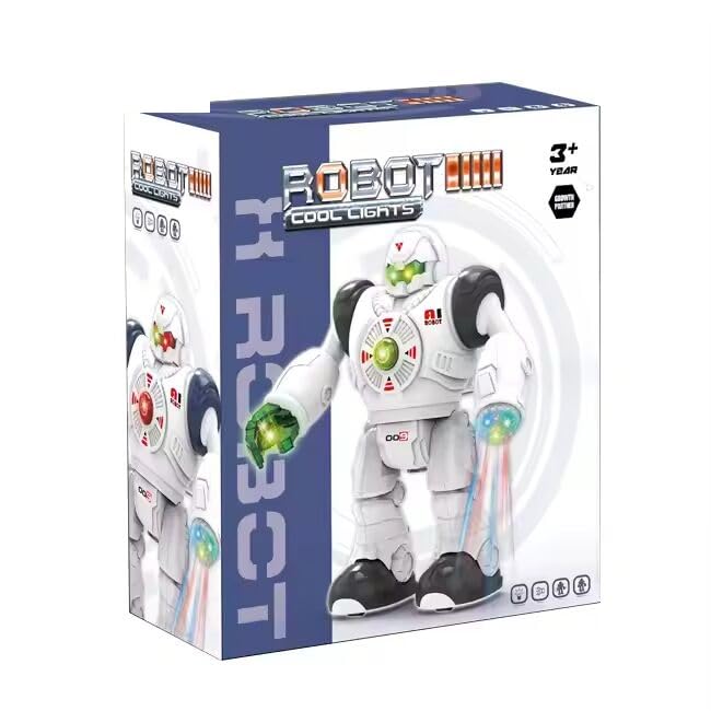 - [إضاءة وتأثيرات صوتية مذهلة] : يصدر الروبوت أضواءً ملونة وأصوات إلكترونية تضيف جوًا من الإثارة، وتشجع الطفل على اللعب التفاعلي والانخراط في عالم الخيال العلمي.