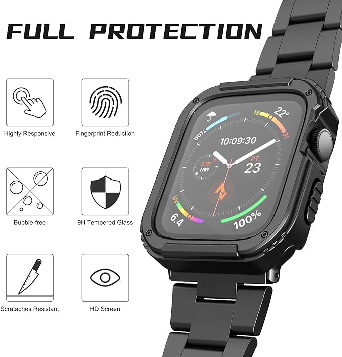 - [حماية شاملة متكاملة]: تصميم الجراب يوفر تغطية كاملة من جميع الجهات، بما في ذلك الحواف والشاشة، مع مادة شفافة مقاومة للخدوش تضمن وضوح الرؤية. الحماية تمنع الضرر الناتج عن الصدمات، السقوط، والخدوش اليومية، مما يحافظ على مظهر الساعة أنيقًا مع أمان إضافي في مختلف الاستخدامات.