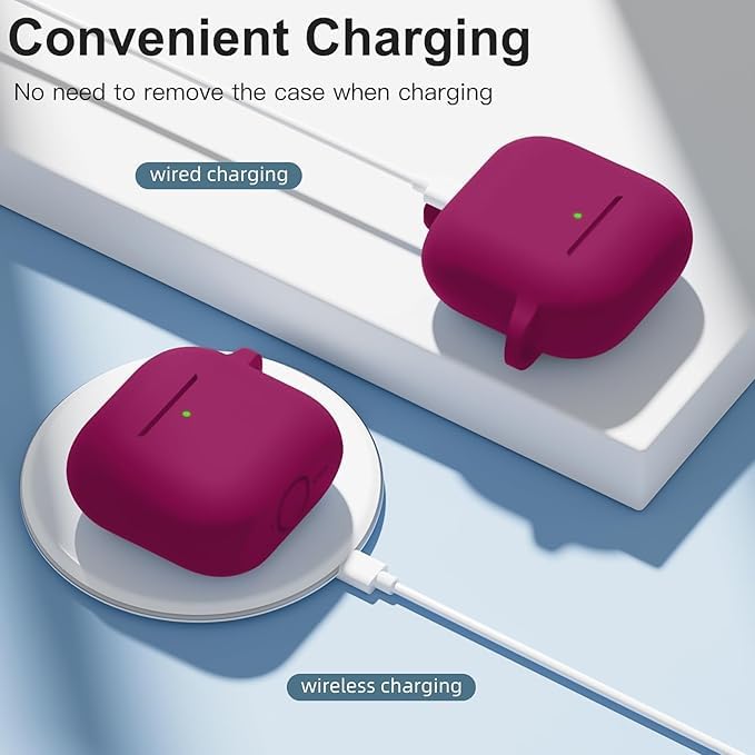 Next store - جراب سيليكون ناعم من Next Store بحماية كاملة مع سلسلة مفاتيح مدمجة، متوافق مع سماعة Airpods 3 تصميم أنيق للرجال والنساء، مقاوم للخدوش والصدمات (احمر وردي)