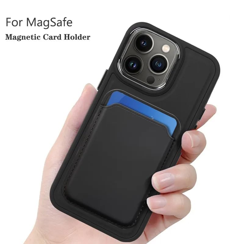 Next store - حامل بطاقات مغناطيسي من السيليكون الناعم متوافق مع سلسلة آيفون 12 و13 و14 و15، حافظة بطاقات الائتمان بظهر لاصق للموبايل، تصميم نحيف وآمن من نكست ستور (أسود)